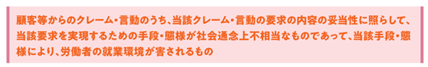 厚生労働省のマニュアルでは、カスハラを以下のように定義しています。